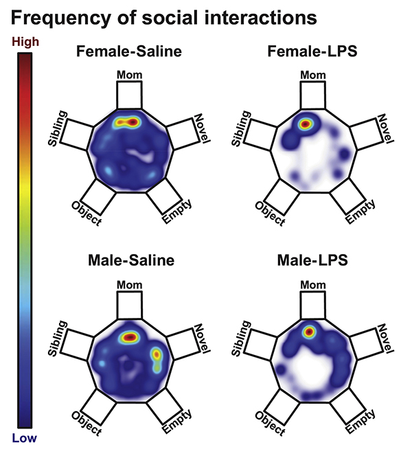 While LPS exposure reduced the time spent investigating all stimuli, adolescent maternal preference was not significantly altered by LPS exposure, demonstrating the resilience of this social bond. These effects were especially pronounced in females, while subtle shifts towards novel exploration began to emerge in males by postnatal day 26.